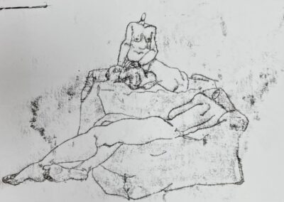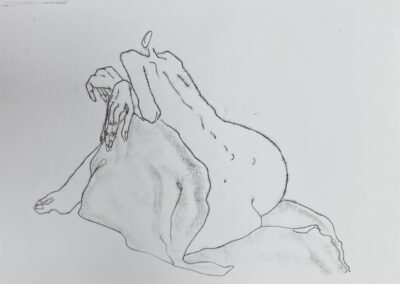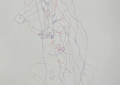 My work explores notions of being. Using line to describe and explore the contours of the human form, figures are often drawn without discernible features, emphasising both the vulnerability and the strength of our collective humanity.